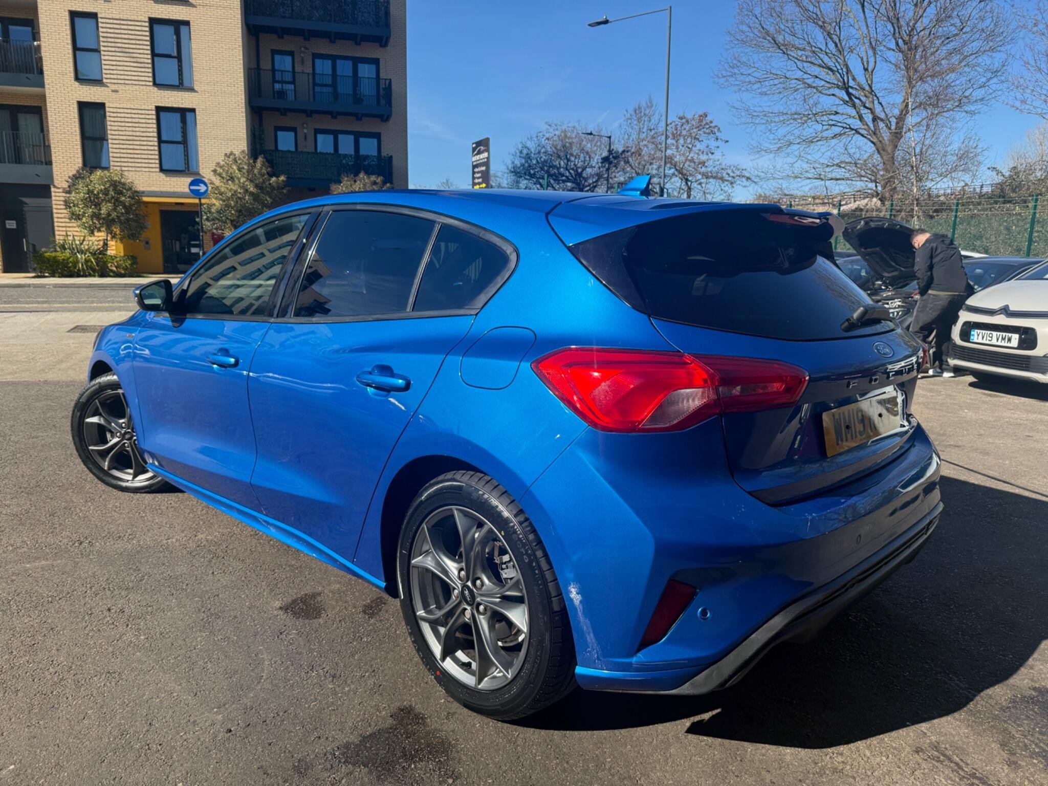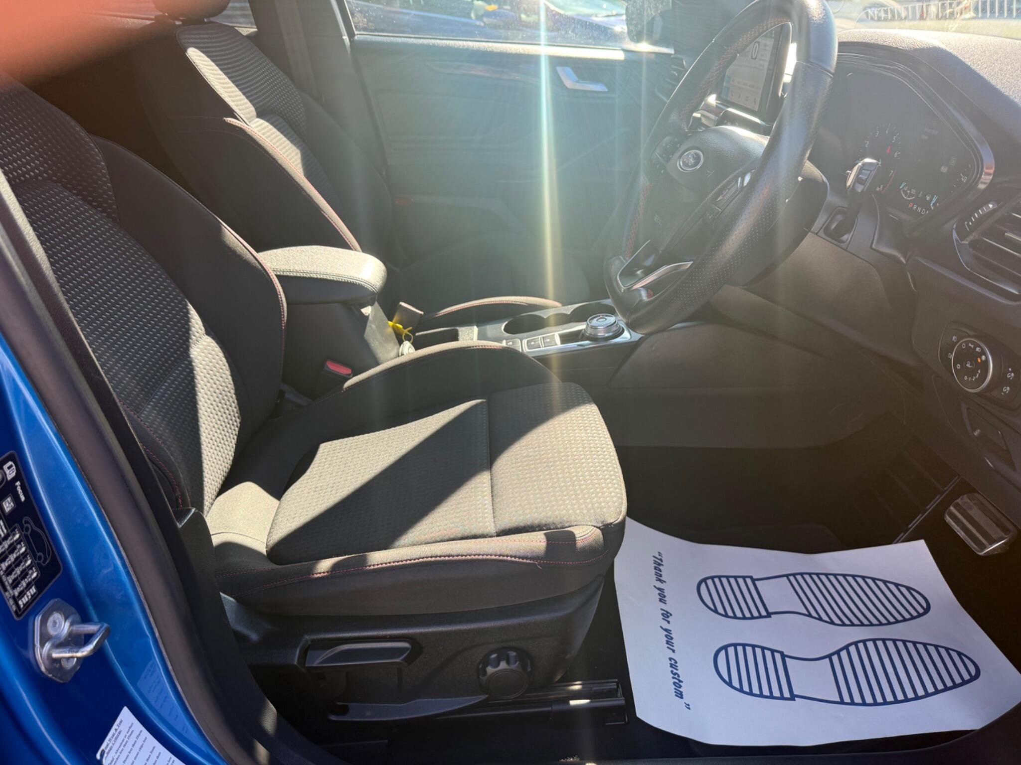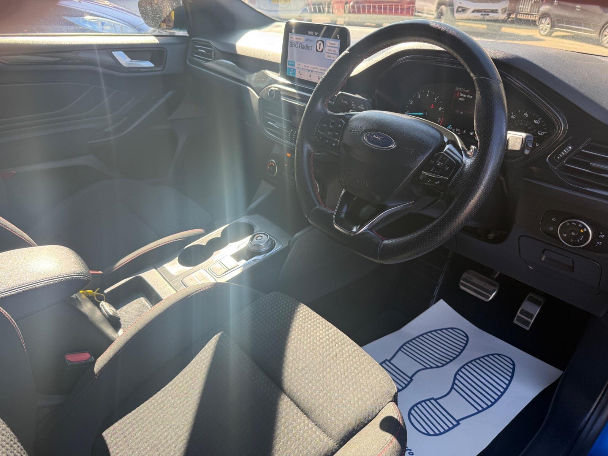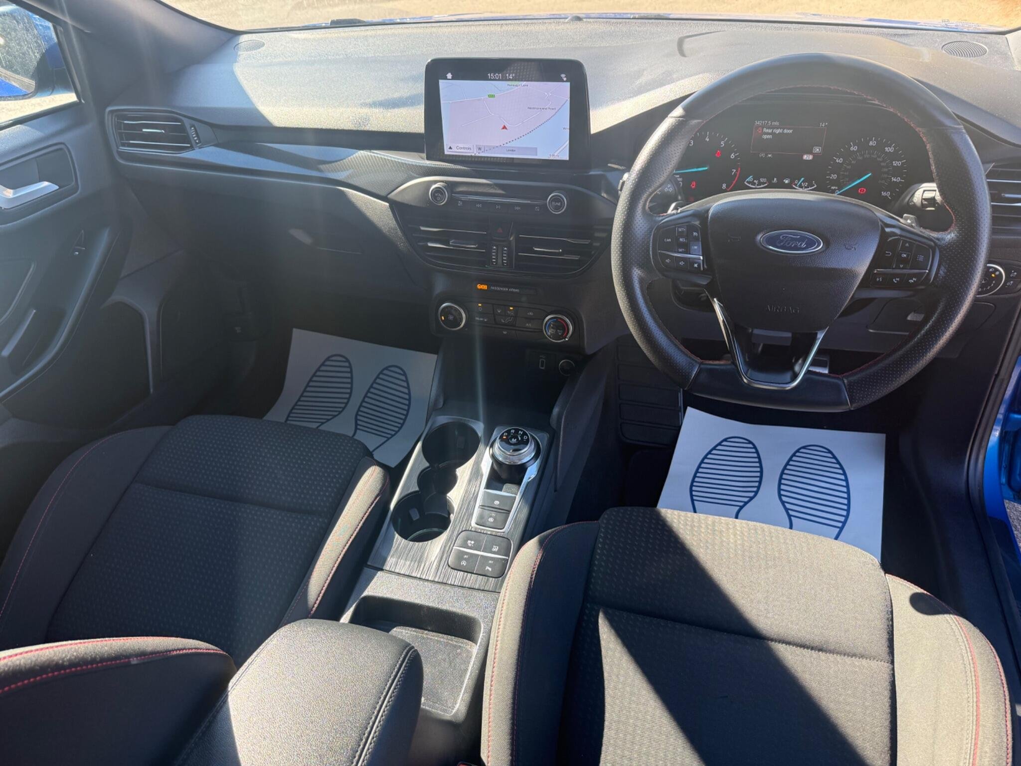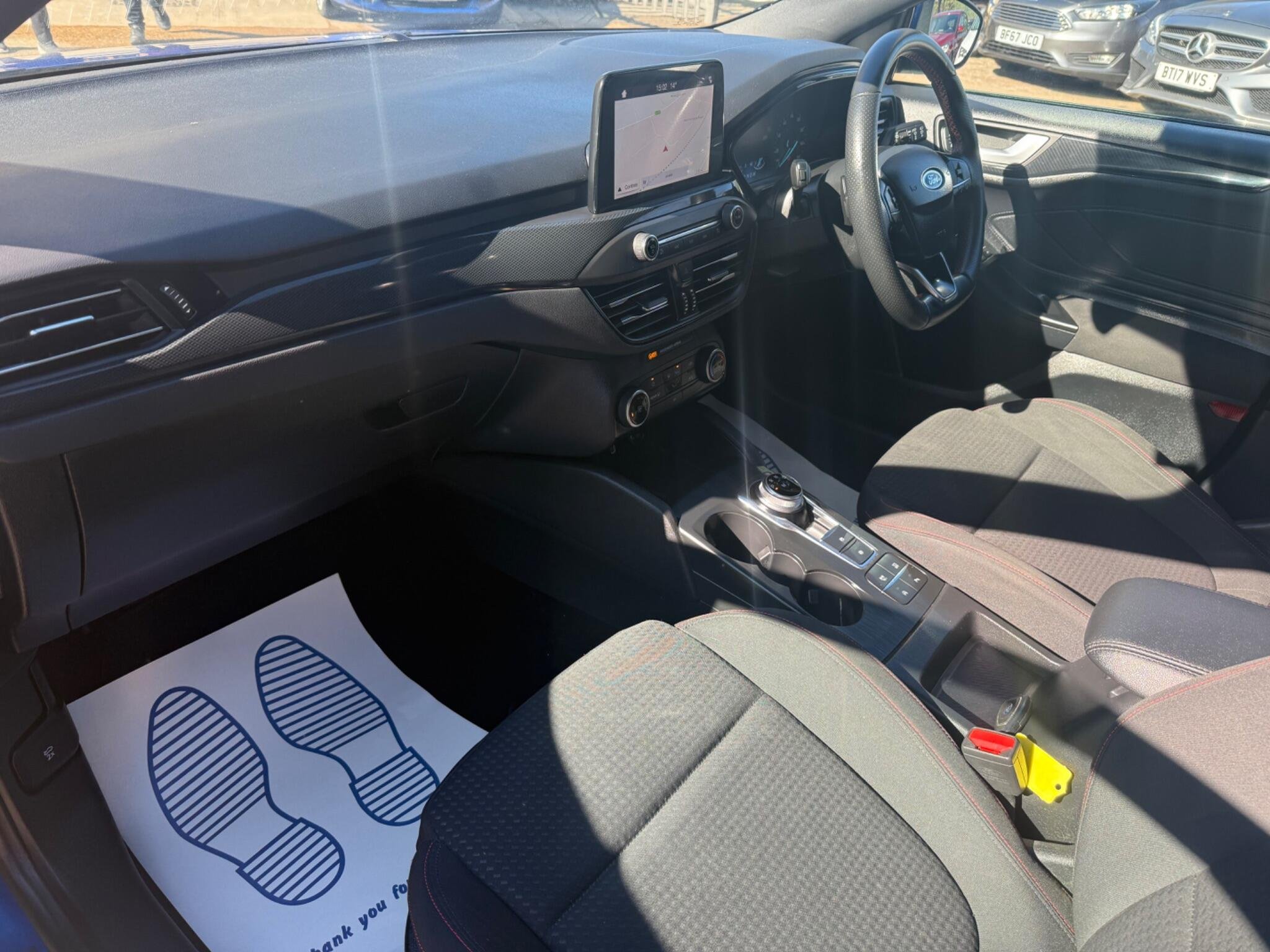 This 2019 Ford Focus ST-Line T boasts exceptionally low mileage for its age, having covered just 34,000 miles. This popular hatchback is powered by an efficient 1.0 litre petrol engine and meets Euro 6 emissions standards. The ST-Line trim offers a sporty feel, enhanced by features like paddle shift gears and a convenient rotary gear shift dial. You'll also appreciate the automatic headlights that illuminate the road when needed, and the Ford SYNC3 DAB radio system. This system includes a clear 6.5 inch floating touchscreen that seamlessly integrates with both Android Auto and Apple CarPlay, keeping you connected on every journey. The generous boot space in this Focus makes it a practical choice for families or anyone needing extra room for shopping or luggage. The combination of its very low mileage, desirable ST-Line specification, and advanced infotainment system with smartphone integration clearly sets this 2019 Ford Focus apart from other similar vehicles on the market. It offers a compelling blend of style, technology, and everyday usability. -