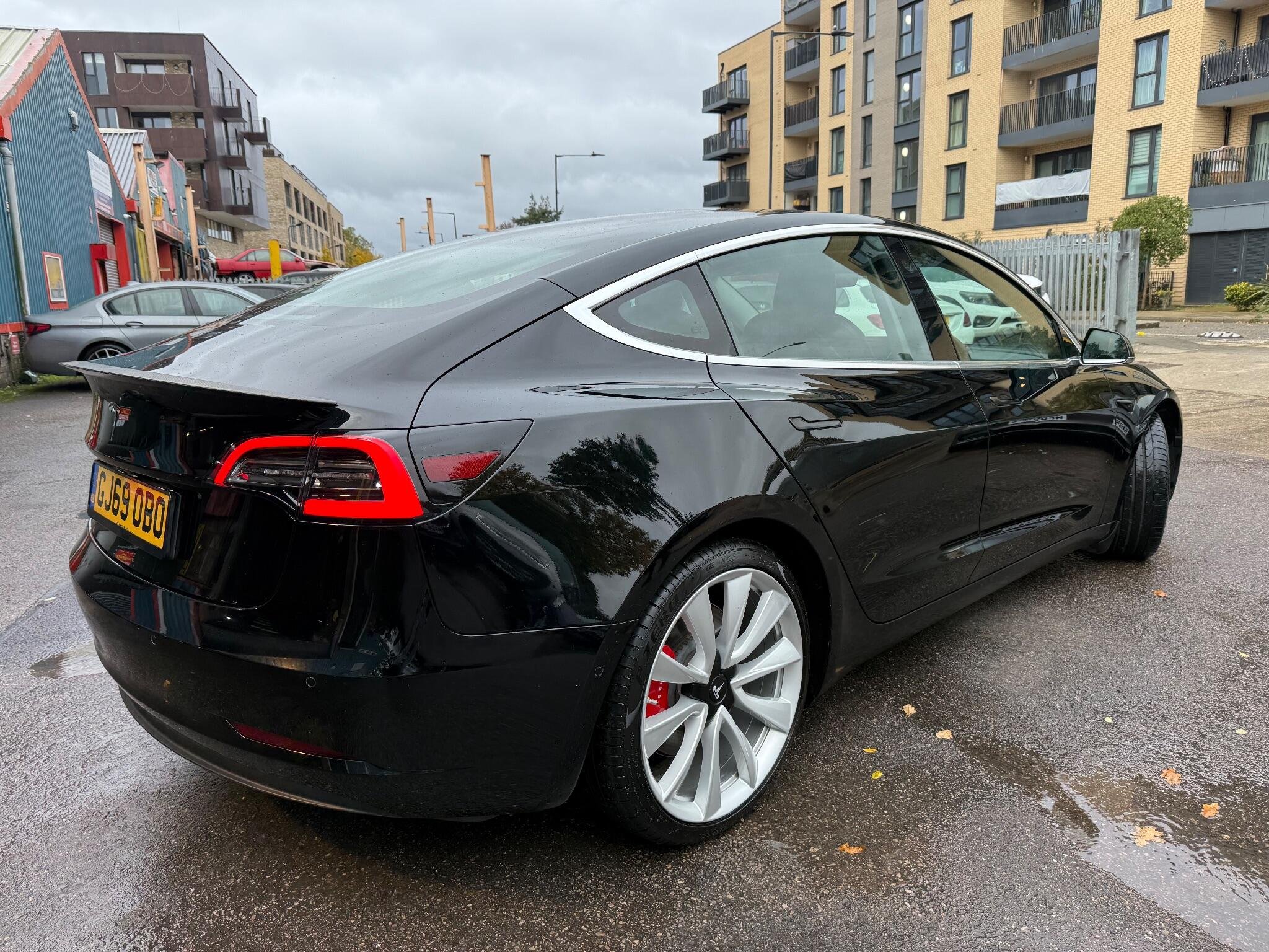 This 2019 Tesla Model 3 Performance is a rare find, having had only one owner since new. This electric vehicle boasts a substantial 82 kWh battery, offering a maximum range of 329 miles when new. Charging at home on a 7kW charger will take approximately 12 hours for a full charge, while rapid public charging can replenish the battery from empty to 80% in as little as 26 minutes. The Model 3 Performance comes equipped with Keyless Go for effortless entry and starting, climate control with air conditioning, and front parking sensors to aid manoeuvrability. Inside, you'll appreciate the comfort of 12 way power adjustable front and rear seats, all of which are heated, ensuring a pleasant experience in any weather. The Performance trim of this Model 3 truly lives up to its name, delivering exhilarating acceleration with a 0 to 60 mph time of just 3.2 seconds. This impressive performance, combined with its Four Wheel Drive system, sets it apart from many other electric vehicles. The extensive battery range and rapid charging capabilities mean you can travel further and recharge faster, making it a practical choice for both daily commutes and longer journeys. This Tesla Model 3 Performance offers a compelling blend of cutting edge technology, impressive electric performance, and exceptional comfort. -